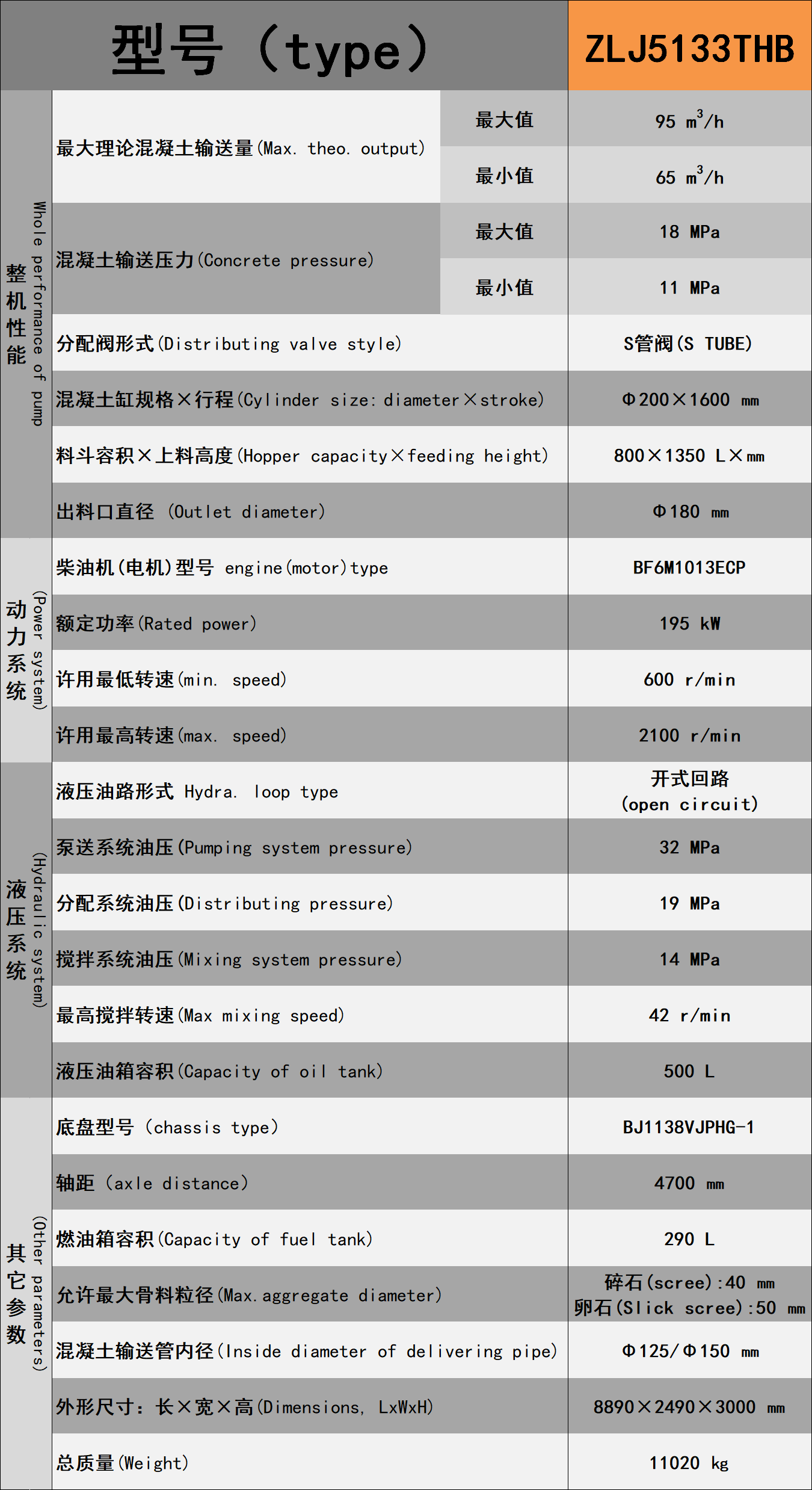 選用國內(nèi)質(zhì)量領(lǐng)先的東風(fēng)底盤,采用世界品牌濰柴道依茨柴油機(jī)作為動力,德國進(jìn)口的力士樂油泵,電氣元件選取也均為國內(nèi)外行業(yè)知名品牌,是一款動力性能好、操作簡單可靠、吸料性強(qiáng)、散熱大的車載式泵車。