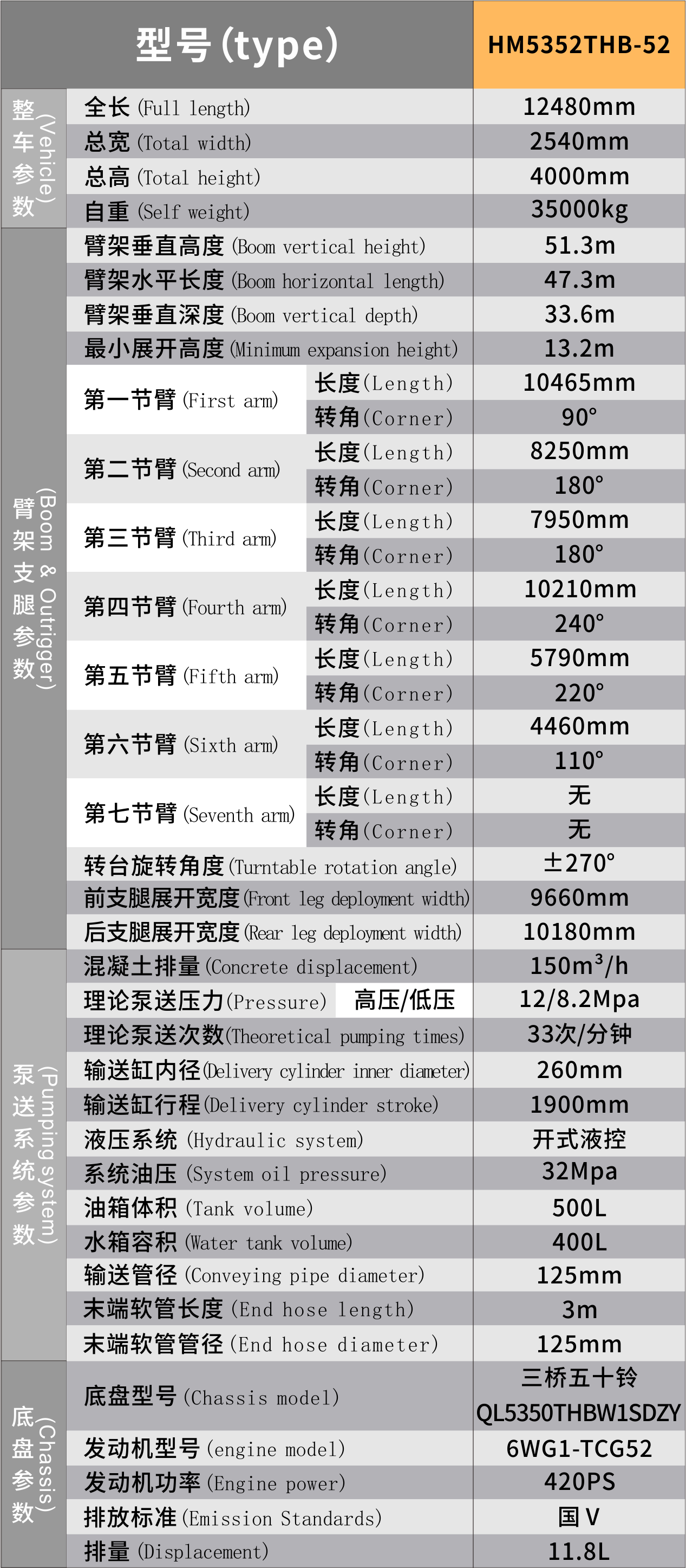 HM5352THB-52三橋52米國(guó)五五十鈴底盤泵車是一款承載能力強(qiáng),動(dòng)力性能好、油耗低,操作簡(jiǎn)單可靠的泵車。