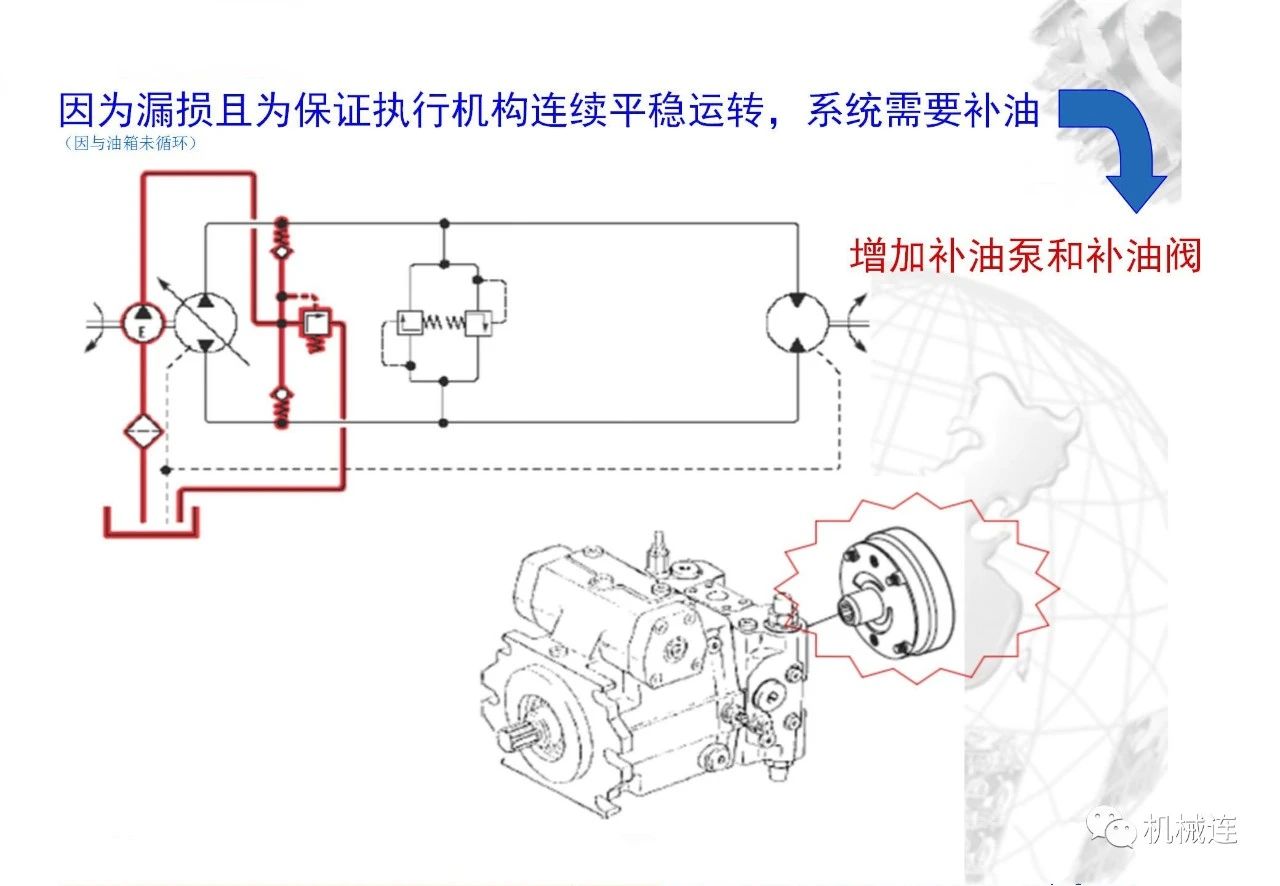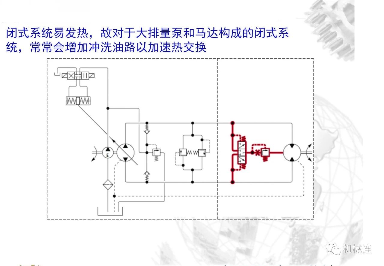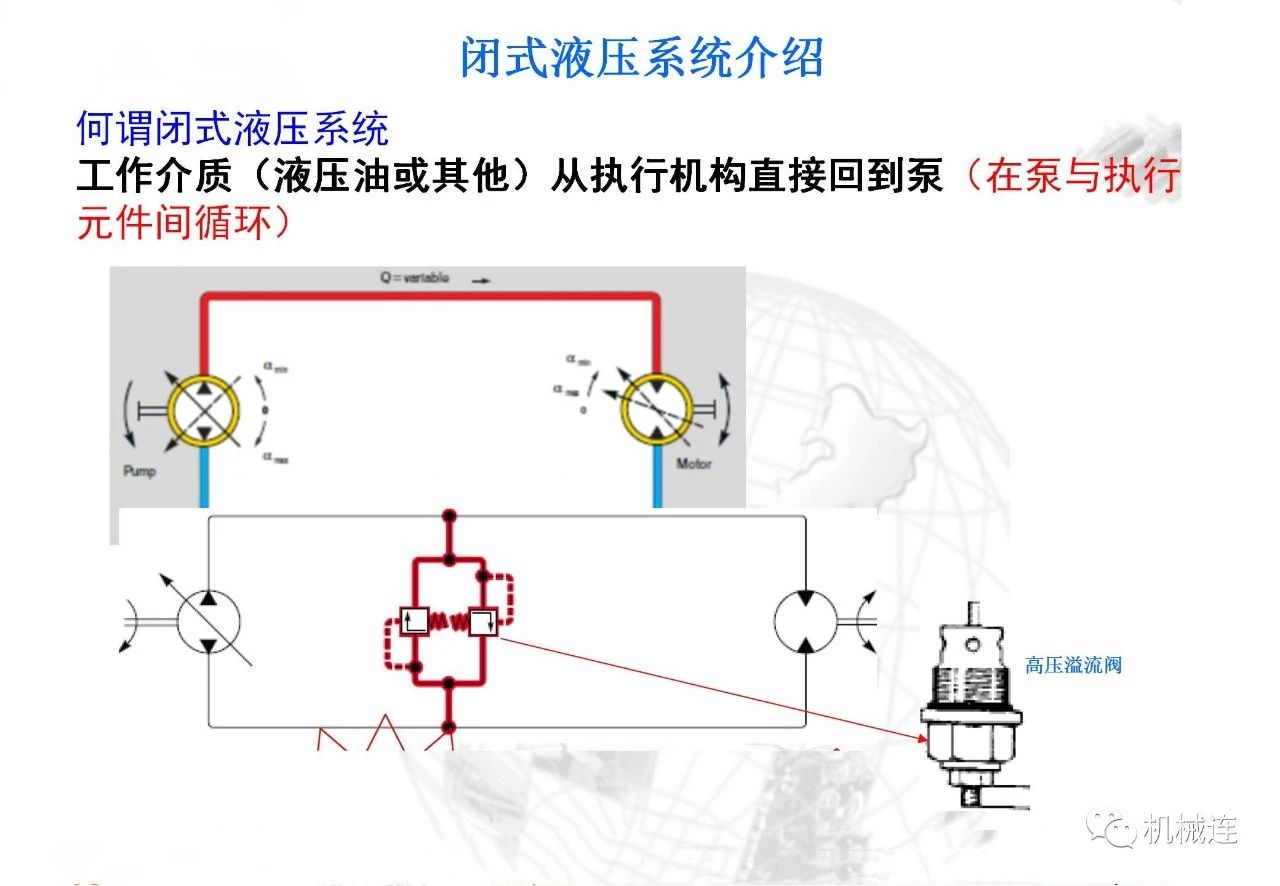 驅動:可逆的=>泵車馬達工況可逆,可實現靜壓制動。
